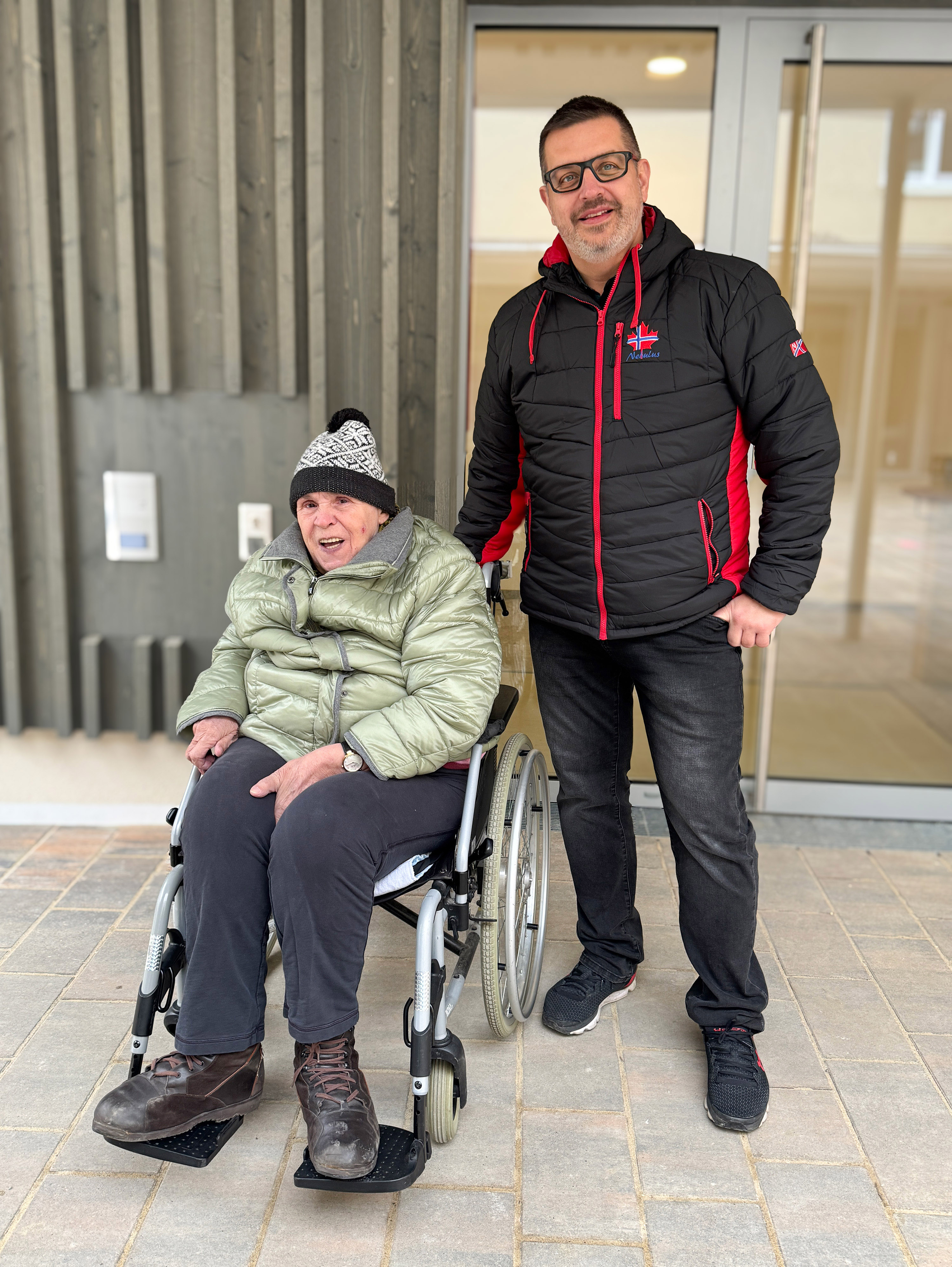 Bild 1: Leiter Hans-Jörg Morri mit Bewohnerin Katharina Steiner