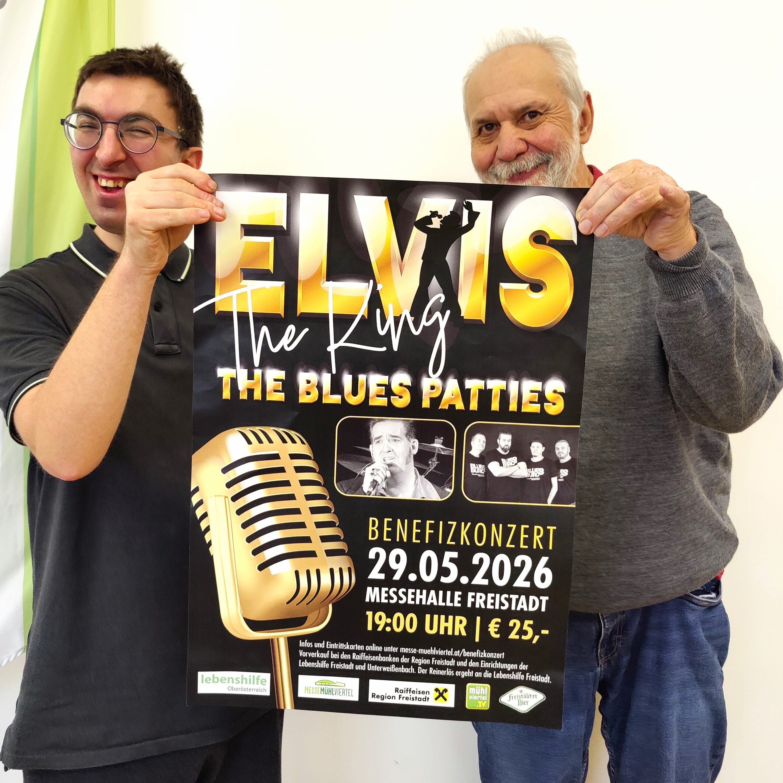 Gemeinsam mit der Messe Freistadt organisiert die Lebenshilfe-Arbeitsgruppe am 29. Mai 2026 ein Benefizkonzert in der Messehalle Freistadt 2. Mit Rudi Hofer alias „The King“ steht ein charismatischer Elvis-Darsteller auf der Bühne, der gemeinsam mit seiner Band den Rock ´n´ Roll nach Freistadt bringt. Der Reinerlös kommt direkt der Lebenshilfe in Freistadt zugute.