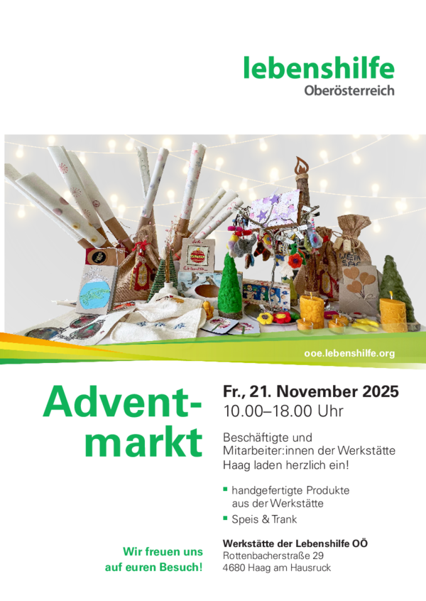 Beschäftigte und Mitarbeiter:innen der Werkstätte Haag laden zum Adventmarkt ein!