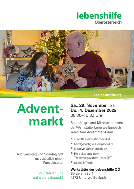 Beschäftigte und Mitarbeiter: innen der Werkstätte Unterweißenbach laden zum Adventmarkt ein!