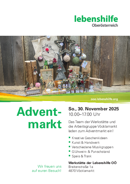 Die Beschäftigten, Mitarbeiter: innen und die Arbeitsgruppe Vöcklamarkt laden herzlich zum Adventmarkt ein!